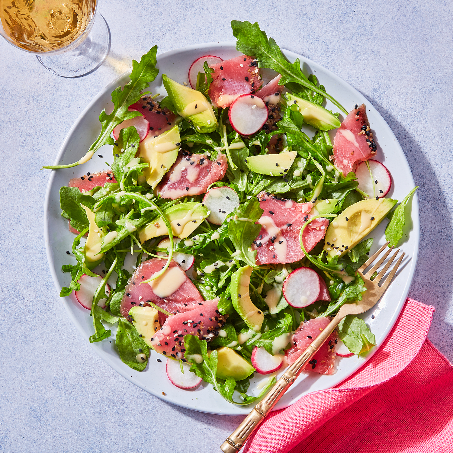 First rate fish. Right outta the package. Our premium, wild-caught Ahi tuna is filleted, cured, and oh-so-subtly smoked for sublimely succulent texture. Brushed with sesame oil, then coated in sesame seeds for maximum mouthwatering flavor, this cold-smoked classic turns greens or grains into an at-home feast.